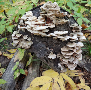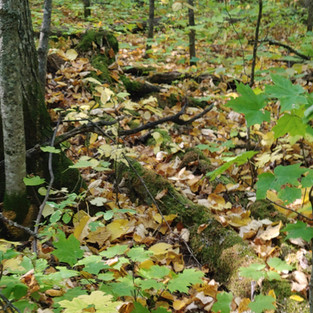I packed everything away, marched into the cabin where Shelley was relaxing and said, "I'm going for a hike over in the national forest. You want to come with?" ... And she said sure. ... I don't think she was ready to head home either. So we jumped in the car and drove over to the state forest on the north end of the lake, and cruised through beautiful fall foliage up to the point where the paths are blocked off. Beyond that point, the rest of the trail is walk-in in only, and I said, "Are you coming with me?" ... Yep, she was in.